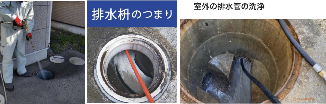 高圧洗浄により排水管のつまりを解消します